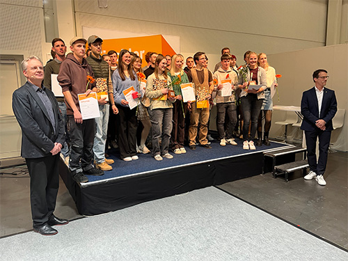 Die jungen Gesellinnen und Gesellen, bereits ausgezeichnet auf Innungsebene, waren bei der Preisverleihung vor Ort, meist in Begleitung ihrer Ausbilder:innen, und wurden in der Würdigung von Karina Michaelis direkt angesprochen: "Ihr seid die Zukunft und tragt das kulturelle Erbe des Tischlerhandwerks weiter."