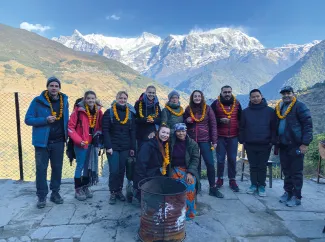 Sechs Studentinnen und zwei Dozenten der DIPLOMA Hochschule haben Mitte Dezember am Future Festival teilgenommen und darüber hinaus ein buntes Programm an touristischen Aktivitäten, interdisziplinären Diskussionen und interkulturellen Begegnungen erlebt. 11 Tage lang reiste die Studiengruppe durch ein überaus gastfreundliches und unfassbar vielfältiges Land im Himalaya. Weit über 100 verschiedene Völker und Sprachen vereint Nepal in seinem einstigen Königreich und beheimatet bemerkenswerte neun der insgesamt 13 8.000er Berge dieser Erde. Bei derartigem Reichtum an Kultur- und Naturschätzen stand auch eine Trekkingtour in den Himalaya für die Studiengruppe auf dem Reiseplan. Von Pokhara aus führte das Abenteuer zunächst mit Jeeps in das abgelegene Bergdorf Tangting und von da aus zu Fuß in die faszinierende Bergwelt Nepals.
