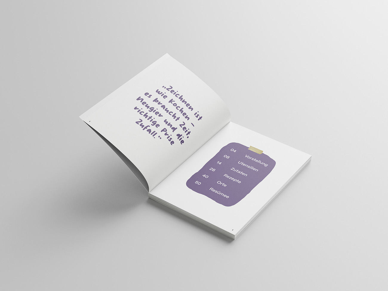 Mein Ziel war es, nicht nur schöne Zeichnungen zu zeigen, sondern zu lernen, freier und mutiger zu arbeiten – egal ob präzise oder spontan. Das Projekt verbindet meine Leidenschaft fürs Zeichnen, fürs Kochen und für Gestaltung – und erzählt gleichzeitig von meinem eigenen Lernprozess und meiner Entwicklung über zwei Semester hinweg.